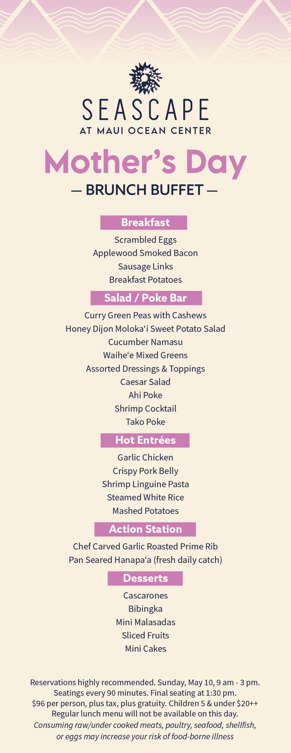 Nestled on the picturesque Māʻalaea Bay, Seascape Restaurant offers breathtaking views of the beach and harbor, making it a dining destination unlike any other on the island. Whether you’re a local resident or a visitor, our restaurant provides a serene and inviting atmosphere to enjoy your meal while taking in the stunning vistas.